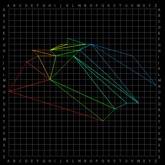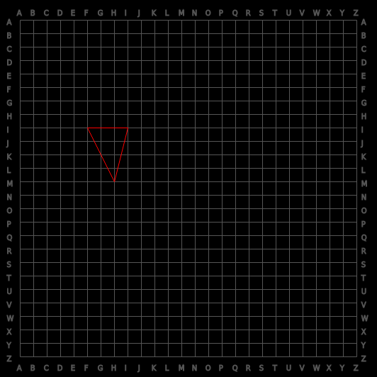 If we now imagine a coordinate grid with letters on the x-axis and y-axis to define coordinates in a two-dimensional system, we can now group these 6 letters in pairs: FI, II, HM. This defines 3 points that form a triangle: