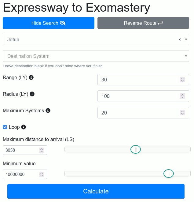 I recommend using the Expressway to Exomastery tool provided by the spansh website.