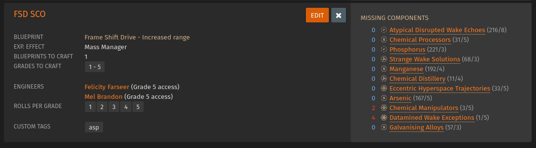 This concludes this article on Inara lists. A very practical tool that will enable you to organize your farm and engineering sessions very quickly. I hope I’ve taught you something, o7 CMDR and enjoy the flight!